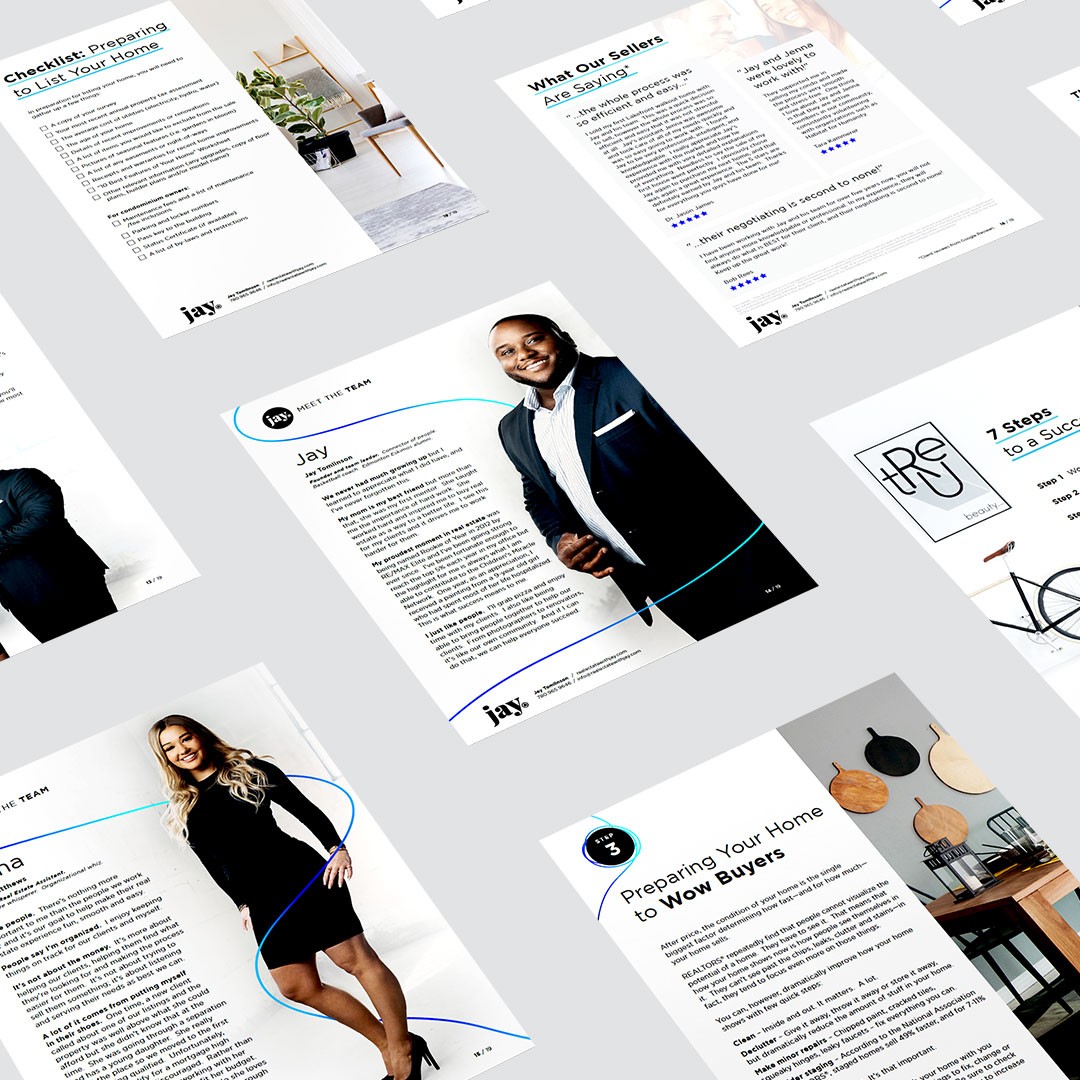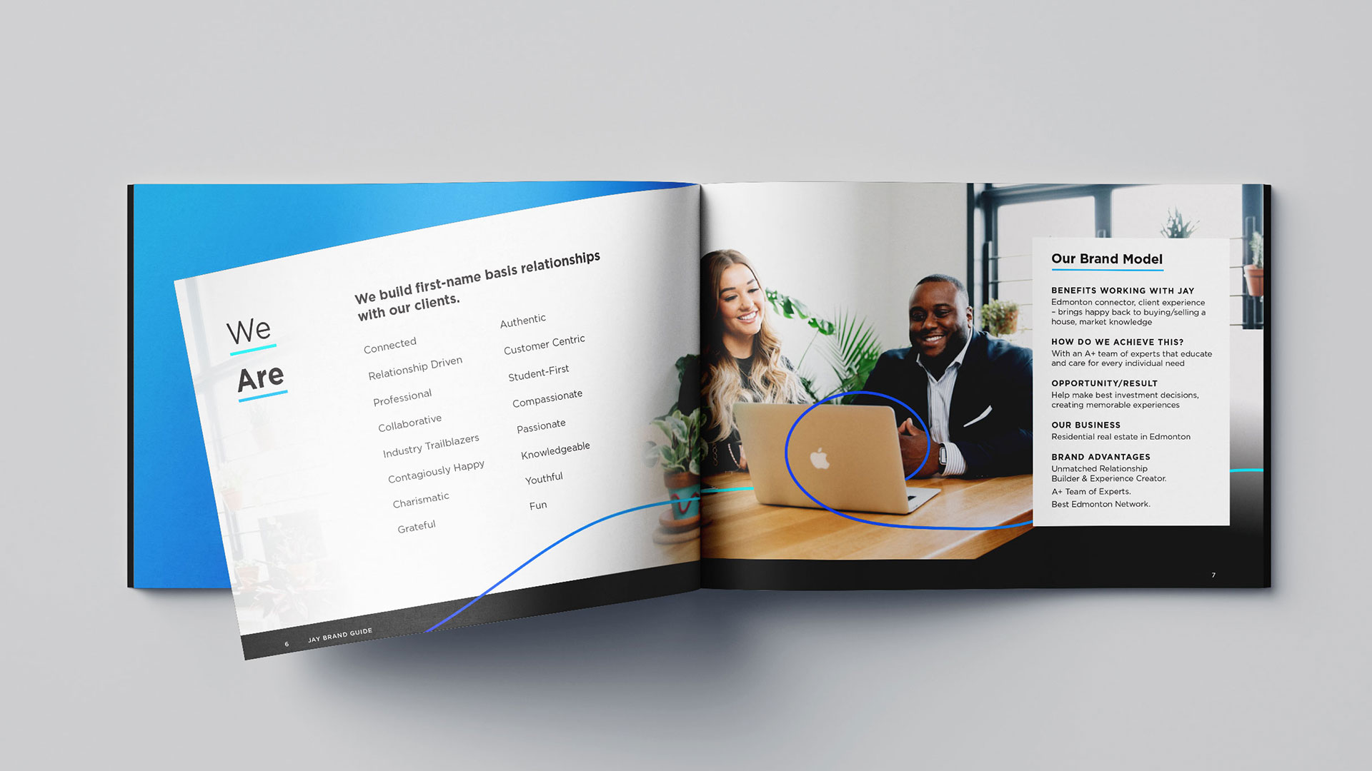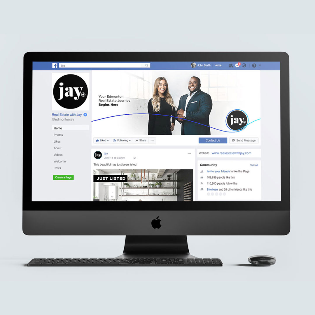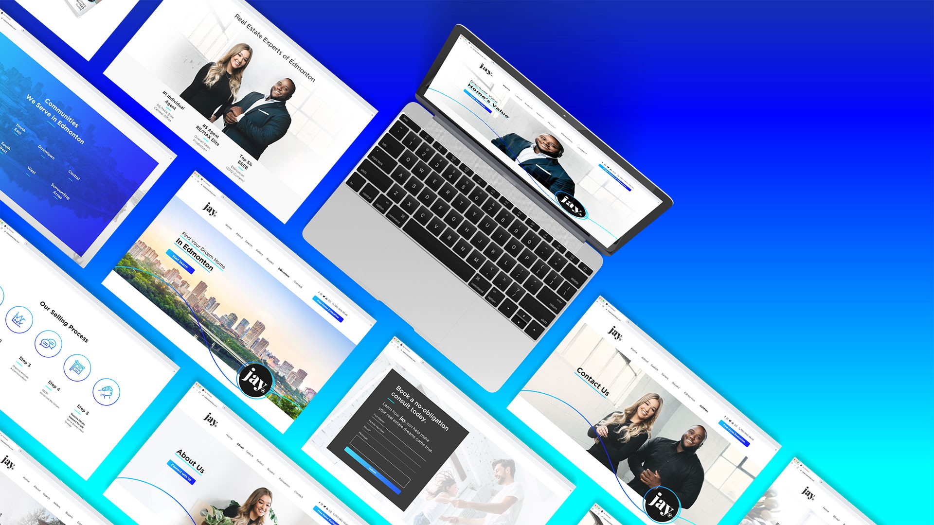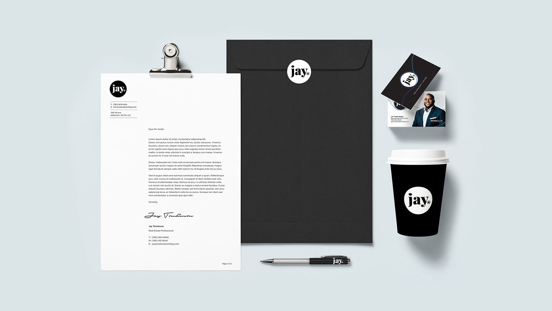 This branding project for an Edmonton-based real estate agent was designed to balance professionalism with personality, while creating a foundation that could grow beyond an individual into a scalable team brand. Using his name, jay, set in lowercase, helped humanize the brand while allowing it to read as a modern company rather than a personal logo. Vibrant neon blue linework wraps through the identity, symbolizing Jay as a connector who is deeply rooted in the Edmonton community and naturally able to bring people together. Paired with a black-and-white, minimal, modern foundation, the blue accents add energy and approachability, resulting in a brand that feels chic, confident, and unmistakably personable.