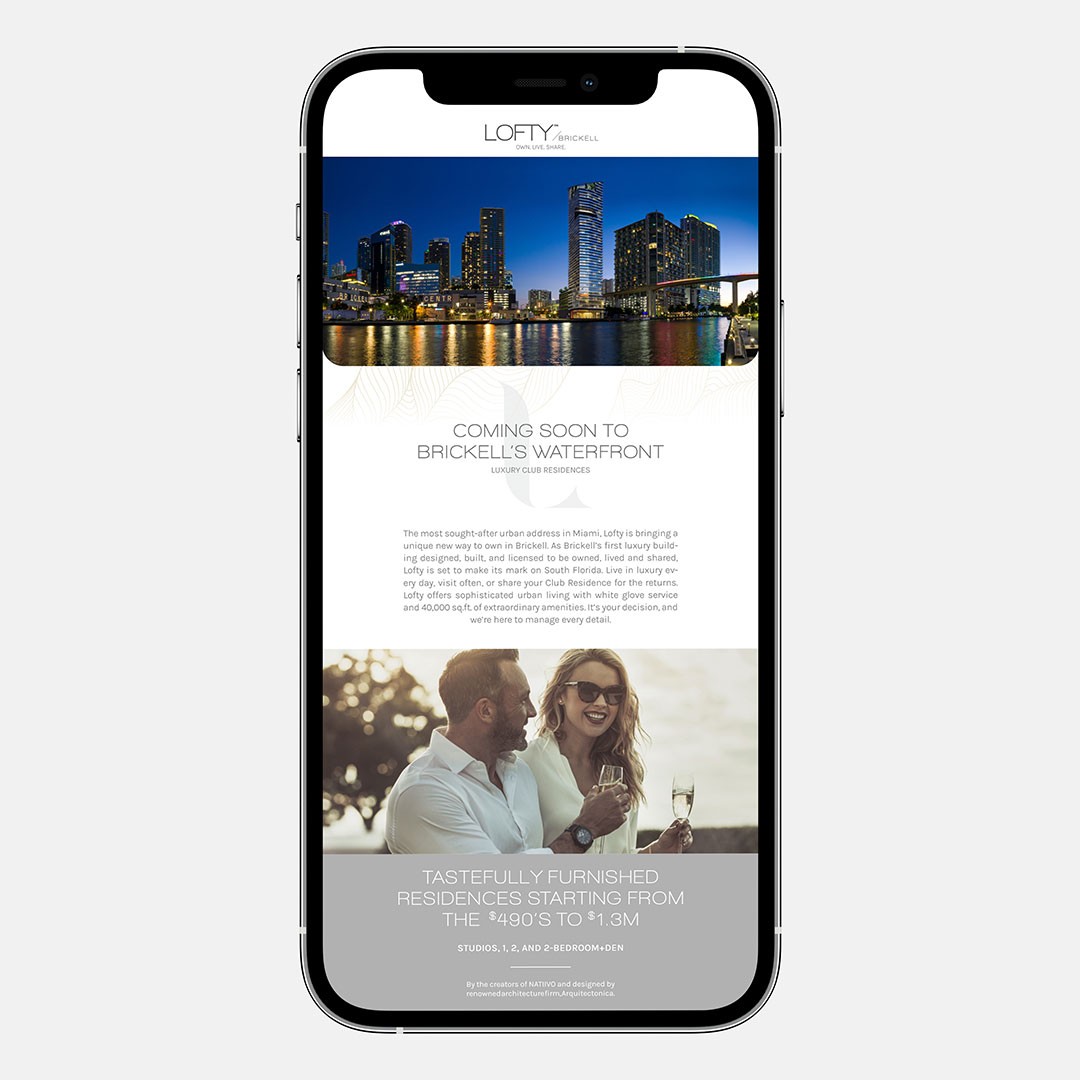 I played a key role in shaping the Lofty brand identity and overseeing its application across all marketing touchpoints. From high-end print collateral to digital campaigns, every element was designed to communicate professionalism, simplicity, and understated luxury, capturing the aspirations of Brickell’s sophisticated audience.